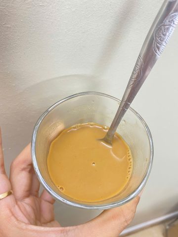 Cho 1-2 thìa cà phê bột hạt sen pha với một ít nước ấm, khuấy đều cho tan. Tiếp tục pha thêm với 200ml nước sôi. Có thể thêm sữa đặc hoặc đá tùy khẩu vị.